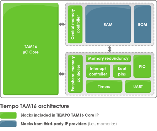 Tiempo clockless 16-bit microcontroller core – TAM16 – offers a complete instruction set with adapted software development kit for ultra-low power applications. This IP is designed in Tiempo fully asynchronous and delay insensitive technology that allows ultra-low power consumption, ultra-low noise, ultra-low EMI, as well as robustness against attacks by power analysis & fault injections.